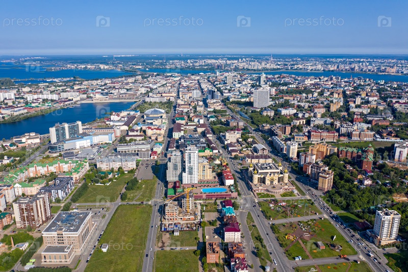 Казань, Россия. С высоты птичьего полета. Панорама Казани