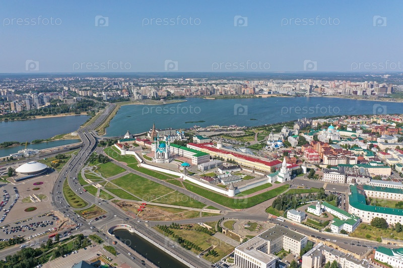 Казань, Россия. Главной достопримечательностью города является Казанский кремль. С высоты птичьего полета