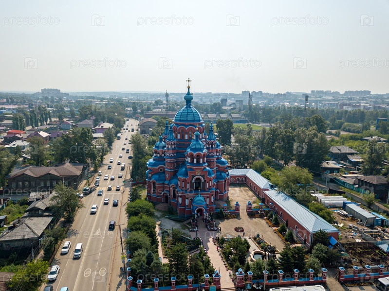 Россия, Иркутск. Храм иконы Казанской Божией Матери в Кустарной слободе. Аэрофотоснимок