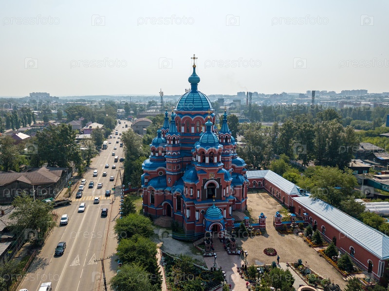 Россия, Иркутск. Храм иконы Казанской Божией Матери в Кустарной слободе. Аэрофотоснимок