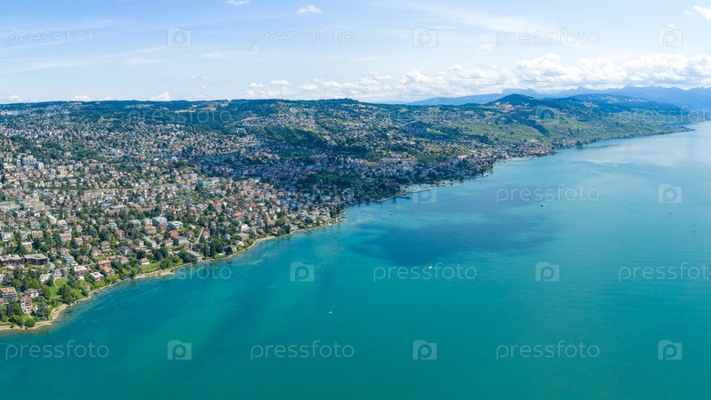 Лозанна, Швейцария. Панорама центральной части города. С высоты птичьего полета