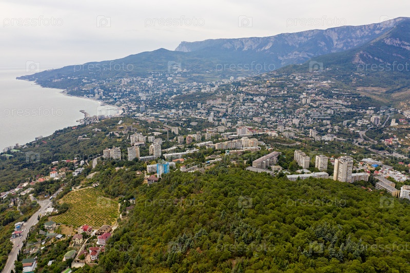 Массандра, Крым. Панорамный вид на город Ялту. С высоты птичьего полета