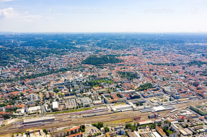 Грац, Австрия. Панорама города. Вид с воздуха на город и его окрестности
