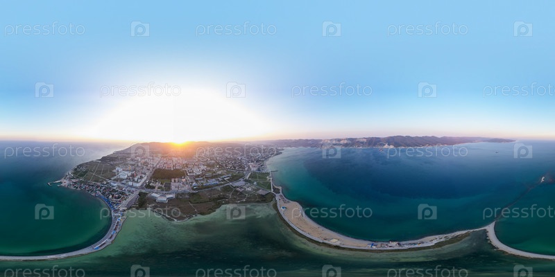 Новороссийск, Россия.Центральная часть города.Суджукская голова.Закат.Паноарма 360.Вид с воздуха