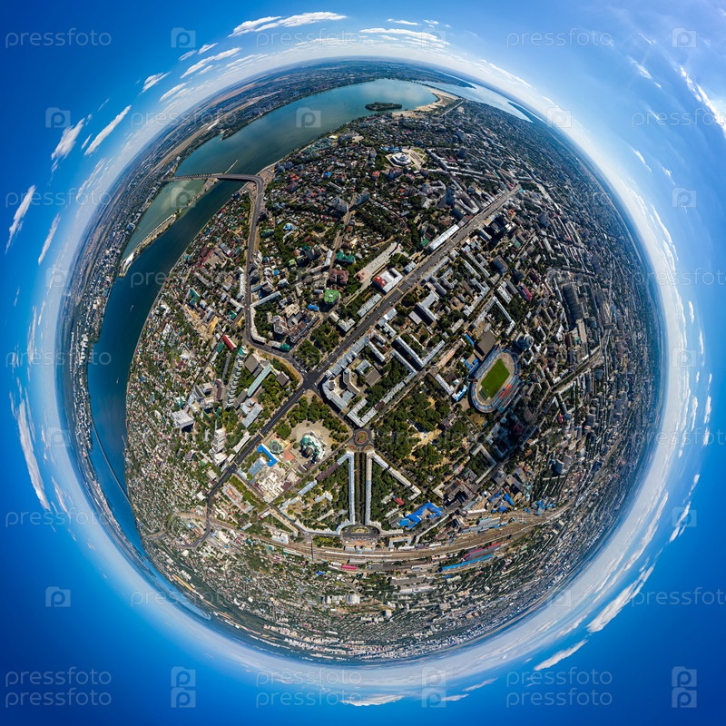 Воронеж, Россия. Панорама города с воздуха. Лето. С высоты птичьего полета. 360-градусный панорамный астероид