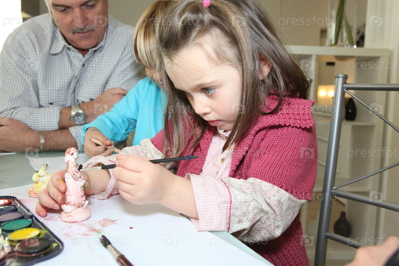 Маленькая девочка раскрашивает фигурку