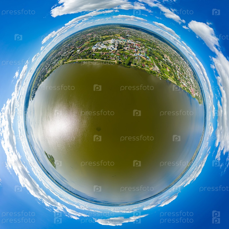 Ростов, Россия. Ростовский кремль. Озеро Неро. С высоты птичьего полета. 360-градусный панорамный астероид