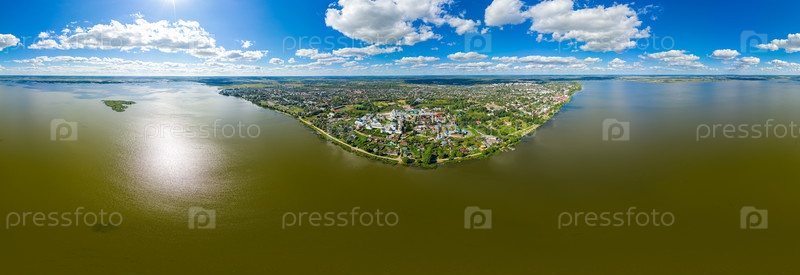 Ростов, Россия. Ростовский кремль. Озеро Неро. С высоты птичьего полета. Панорама 360