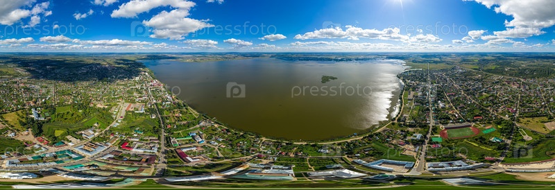 Ростов, Россия. Ростовский кремль. Озеро Неро. С высоты птичьего полета. Панорама 360