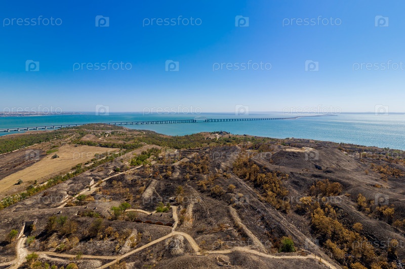 Керчь, Крым. Крепость Керчь - Артиллерийский форт 19 века с тоннелями и подземельями. С видом на Крымский мост. С высоты птичьего полета