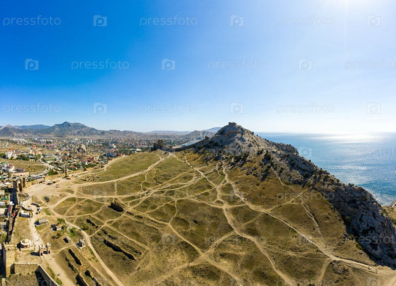 Судак, Крым. Генуэзская крепость. С высоты птичьего полета. Лето