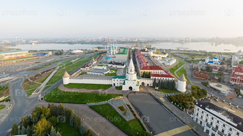 Вид с воздуха на Казанский Кремль во время восхода солнца