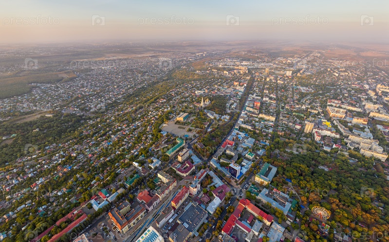 Ставрополь, Россия. Вид с воздуха на центр города во время заката. Падать