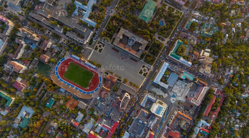 Ставрополь, Россия. Вид с воздуха на центр города во время заката. Падать