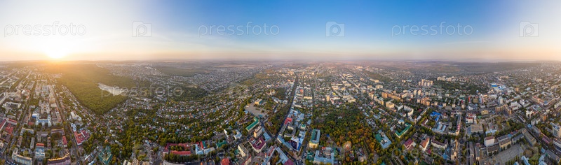 Ставрополь, Россия. Вид с воздуха на центр города во время заката. Паноарма 360. Осень