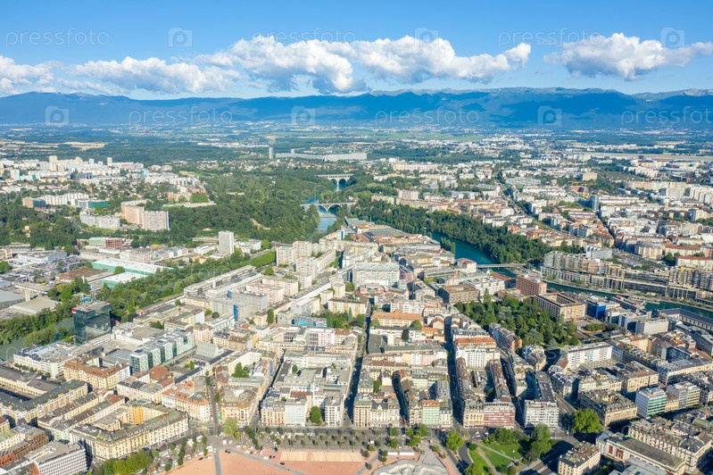 Женева, Швейцария. Женева с воздуха. Вид с воздуха на город