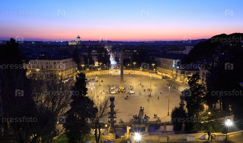 Пьяцца дель Пополо. Вечер. Рим, Италия