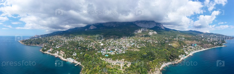 Алупка. Крым. Воронцовский дворец в свете яркого солнца. Лето. С высоты птичьего полета