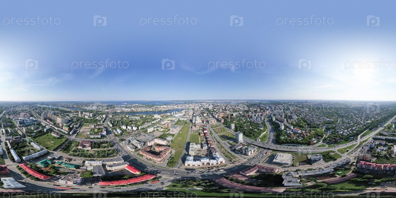 Казань, Россия. С высоты птичьего полета. Сферическая панорама Казани. Полный 360 градусов