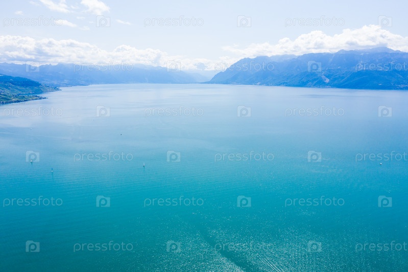 Лозанна, Швейцария. Женевское озеро. Воздушная панорама. Лето