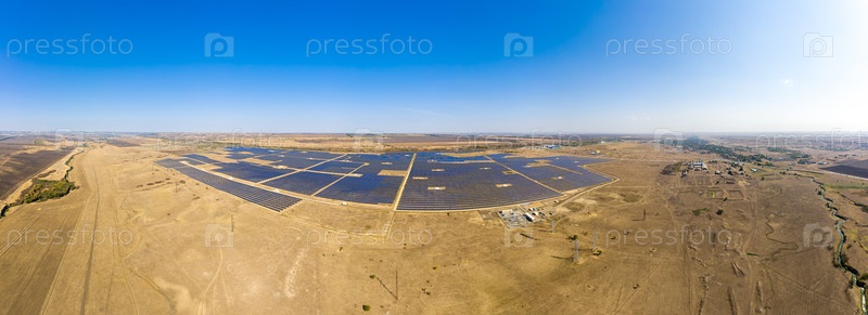 Ставрополь, Россия. Деревня Старомарьевка. Крупнейшая солнечная электростанция в России. С высоты птичьего полета