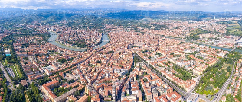 Верона, Италия. Панорама исторической части Вероны с воздуха