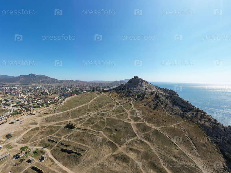 Судак, Крым. Генуэзская крепость. С высоты птичьего полета. Лето