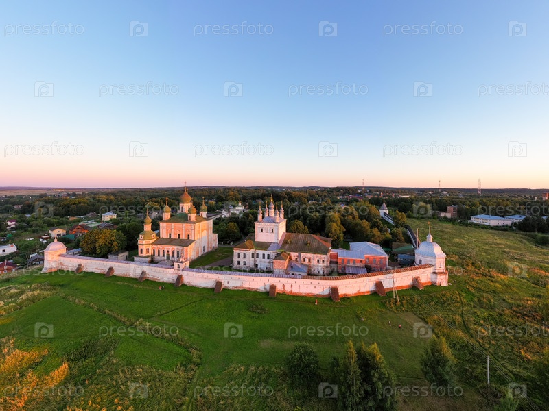 Переславль-Залесский, Россия. Горицкий Успенский монастырь на закате. С высоты птичьего полета