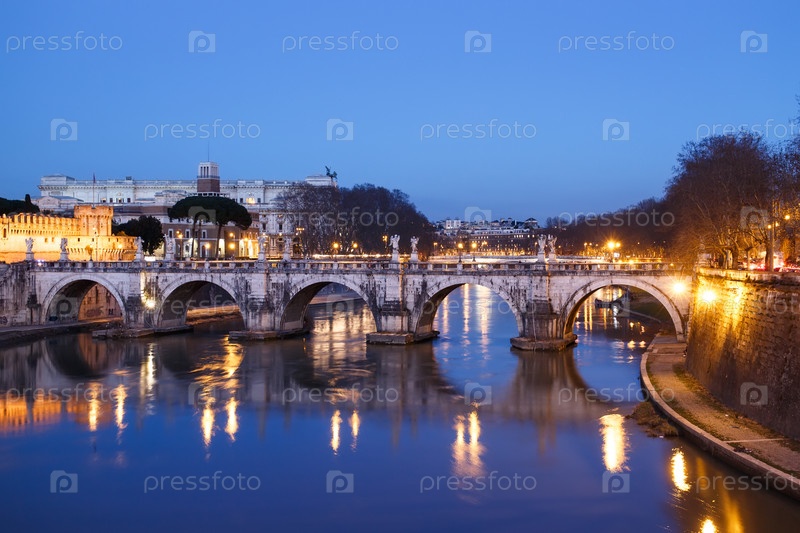 Мост Сант-Анджело. Сумерки. Рим, Италия