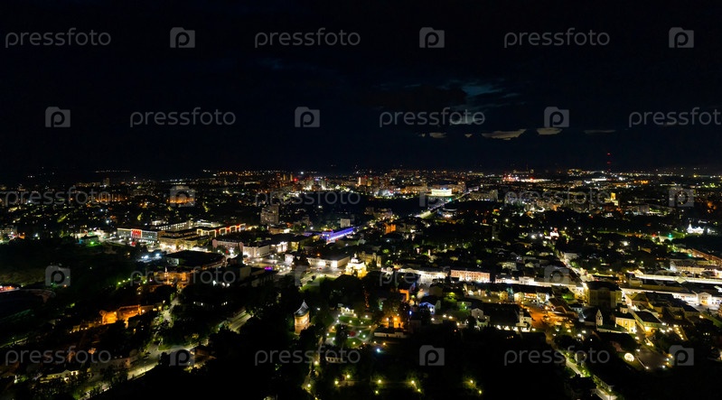 Россия, Владимир. Панорама центра города. Ночной вид с воздуха