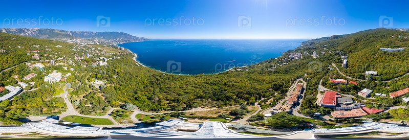 Ливадия, Крым. Панорама 360 ялтинского побережья. Ливадийский дворец - расположен на берегу Черного моря в поселке Ливадия Ялтинского Криминального района. С высоты птичьего полета