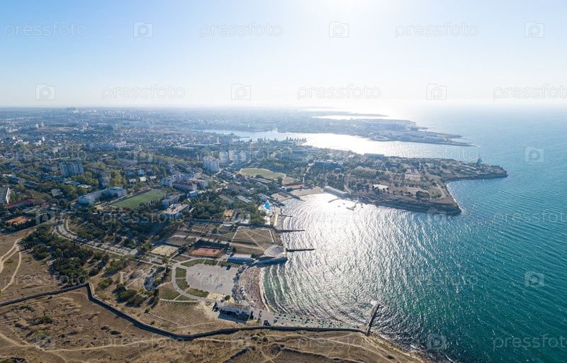Севастополь. Крым. Панорама побережья Севастополя, вид с воздуха