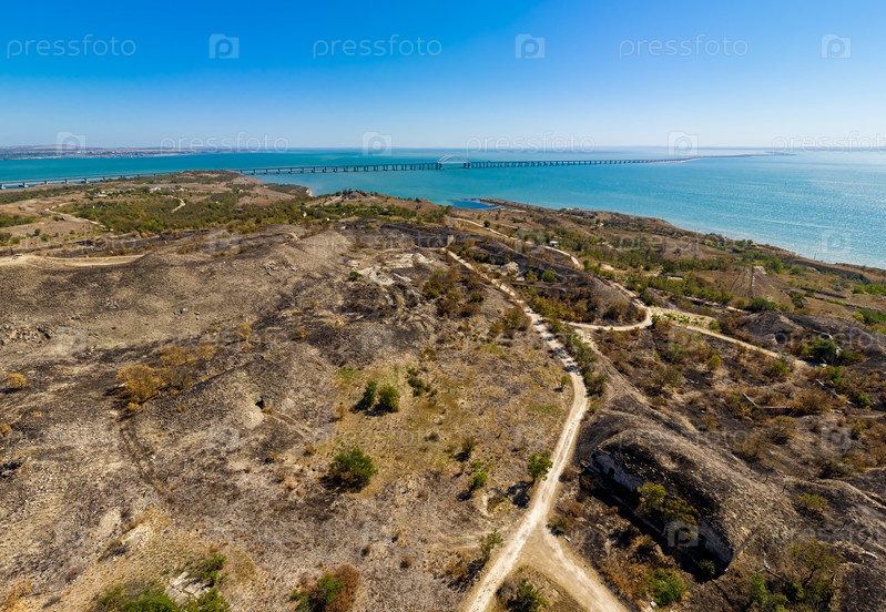 Керчь, Крым. Крепость Керчь - Артиллерийский форт 19 века с тоннелями и подземельями. С видом на Крымский мост. С высоты птичьего полета