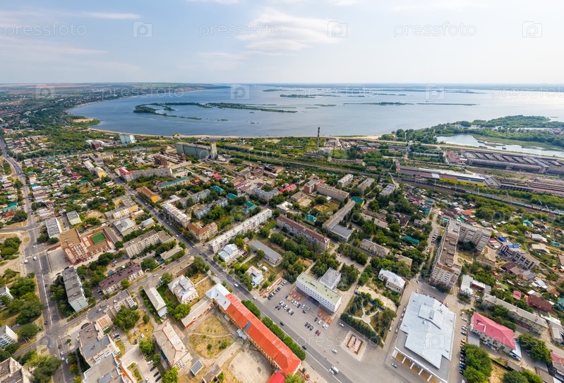 Сызрань, Россия. Аэрофотоснимок центральной части города. Вид на Волгу