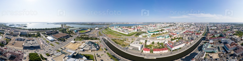 Казань, Россия. Панорама центральной части города, вид на Казанский Кремль. С высоты птичьего полета
