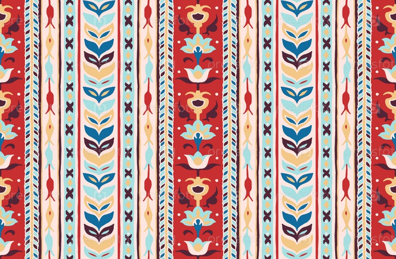 Геометрический дамасский орнамент. Икат границы. Этническая вышивка с листьями и монограммами. Племенная векторная текстура. Бесшовный народный узор в ацтекском стиле. Индийский, скандинавский, цыганский, мексиканский, африканский ковер