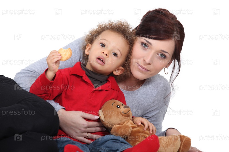 Мать с мальчиком и плюшевым медведем