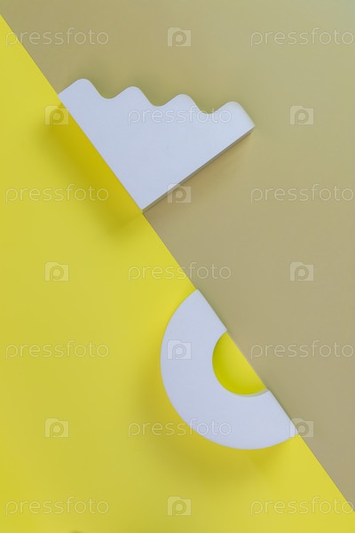 Абстрактный желтый фон с конкретными геометрическими фигурами арки и лестницы. Модный комплект