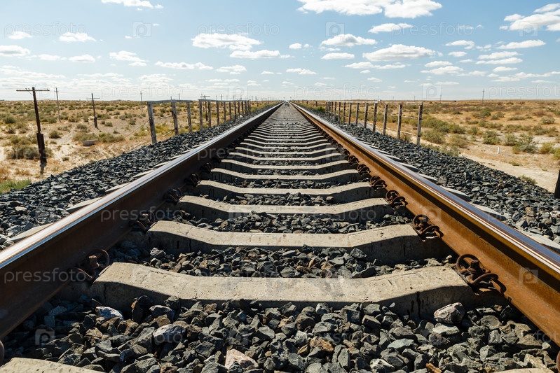Однопутная железнодорожная линия, железнодорожный путь в степи Казахстана