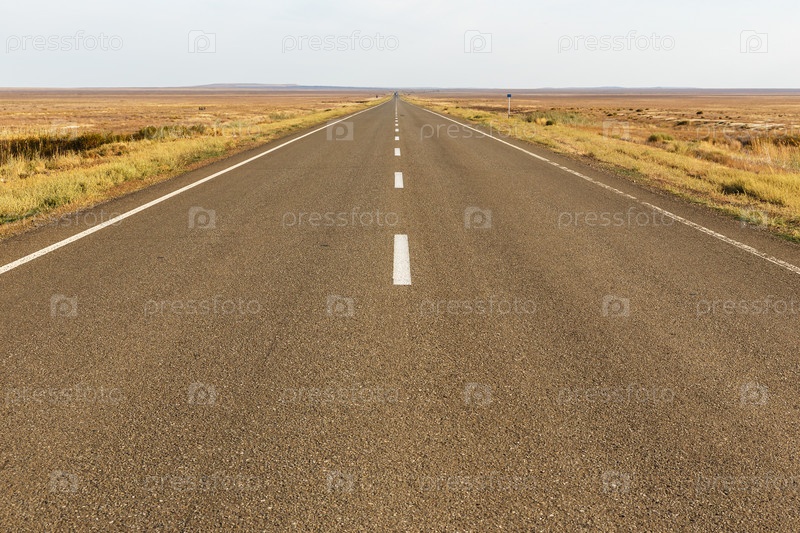 Асфальтированная дорога в степи Казахстана, Актюбинская область