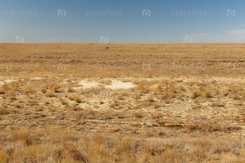 Пустынная степь осенью в Приаралье Казахстана, сухая трава