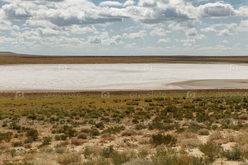 Соленое озеро в степи Казахстана