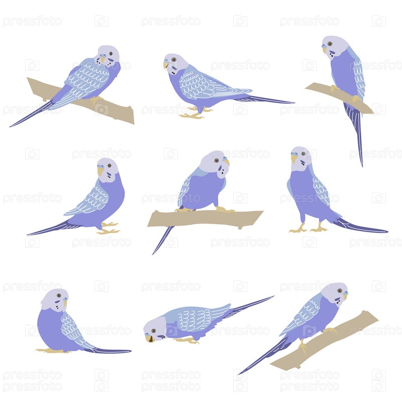 Голубой волнистый попугайчик в разных позах