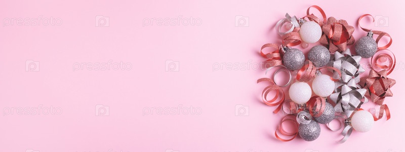 Рождественский баннер с праздничными украшениями на розовом фоне