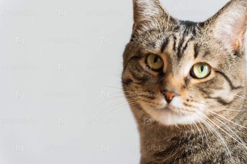 Кот крупным планом. Кот смотрит вперед, место для текста
