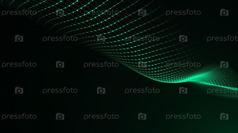 Динамические частицы зеленой звуковой волны. Визуализация больших данных. Футуристический фон. 3D-визуализация