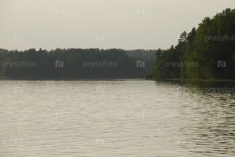Летний закат на берегу лесного озера