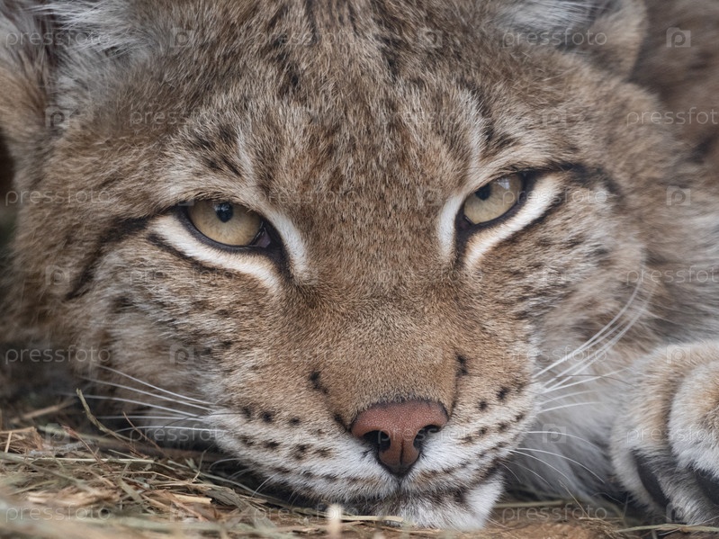 Рысь смотрит хищными глазами из укрытия