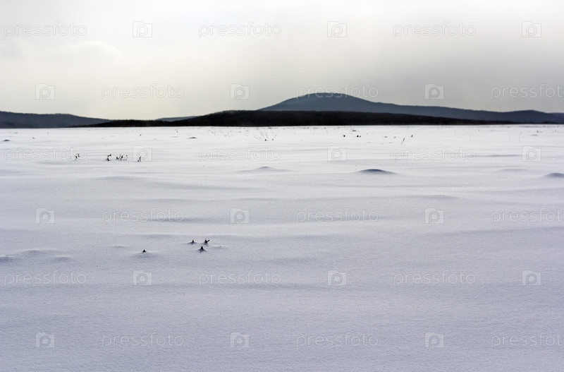 Свежий снежный покров в дюнах крупным планом, зимний пейзаж