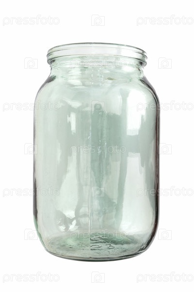 Пустая стеклянная банка на белом фоне